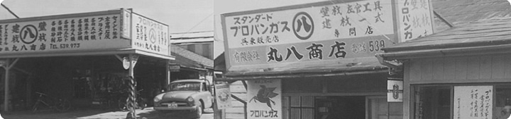 | 昭和29年10月 | 魚津市村木に資本金50万円をもって(有)丸八商店を創設。 セメント・建築内装材・左官用材およびプロパンガスの販売・普及を図る。 |